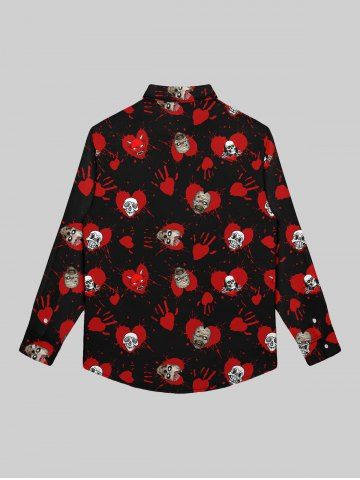 Gothic Turn-down Collar Bloody Heart Palm Skulls Print Valentines Buttons Shirt For Men - Black - Xl