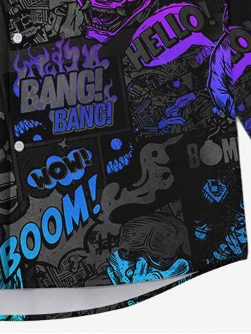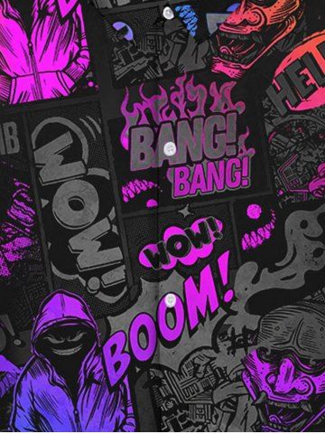 Gothic Turn-down Collar Colorful Ombre Skulls Man Letters Colorblock Print Buttons Shirt For Men - Black - 5xl