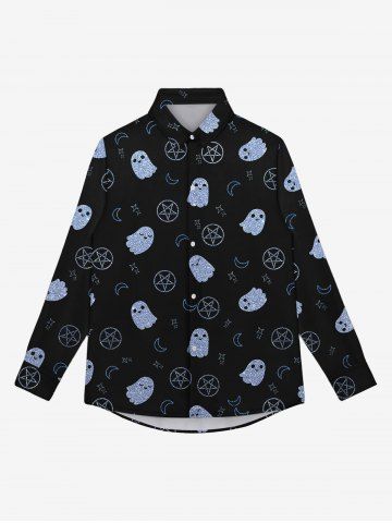 Gothic Turn-down Collar Cute Ghost Moon Star Printed Buttons Shirt For Men - Black - M