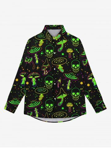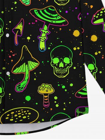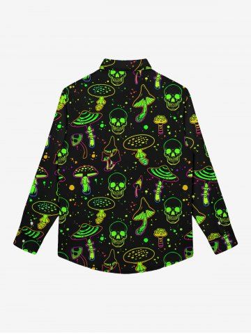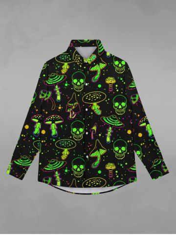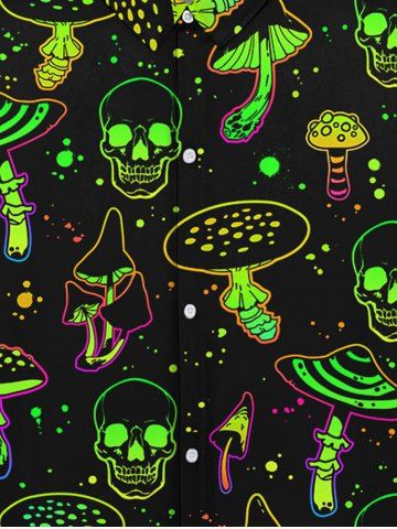 Gothic Turn-down Collar Glitter Skulls Mushrooms Print Buttons Shirt For Men - Black - 2xl