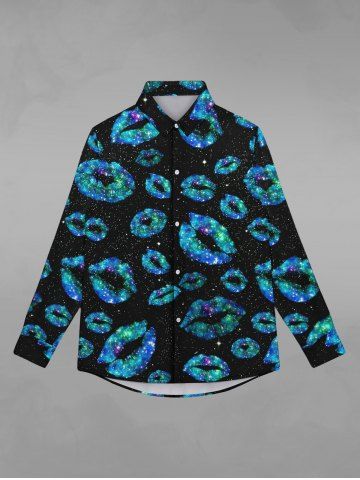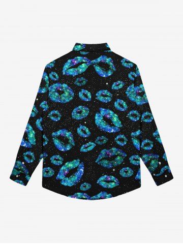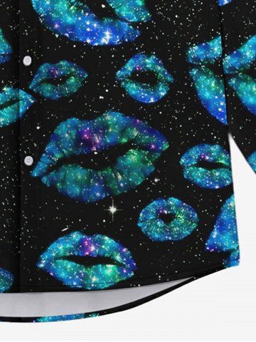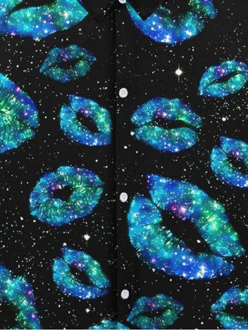 Gothic Turn-down Collar Glitter Sparkling Lip Galaxy Printed Buttons Shirt For Men - Black - 2xl