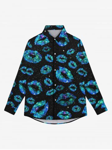 Gothic Turn-down Collar Glitter Sparkling Lip Galaxy Printed Buttons Shirt For Men - Black - 7xl