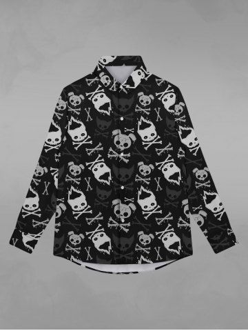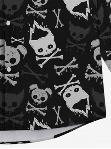Gothic Turn-down Collar Ombre Dog Cat Skulls Fire Bone Print Buttons Shirt For Men - Black - 2xl