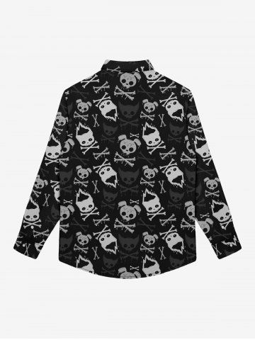 Gothic Turn-down Collar Ombre Dog Cat Skulls Fire Bone Print Buttons Shirt For Men - Black - 3xl