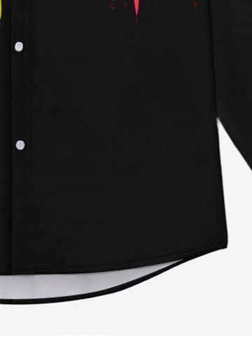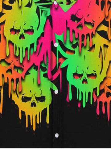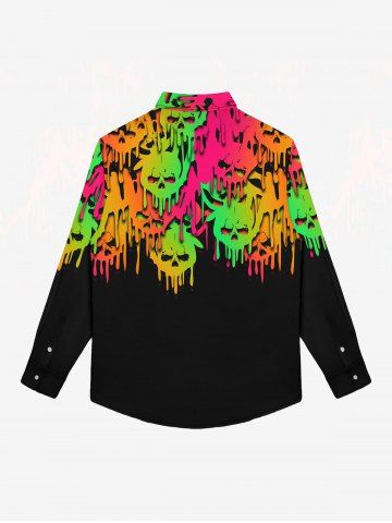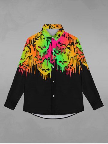 Gothic Turn-down Collar Ombre Paint Drop Skulls Print Full Buttons Shirt For Men - Black - 2xl