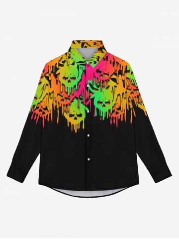 Gothic Turn-down Collar Ombre Paint Drop Skulls Print Full Buttons Shirt For Men - Black - 4xl