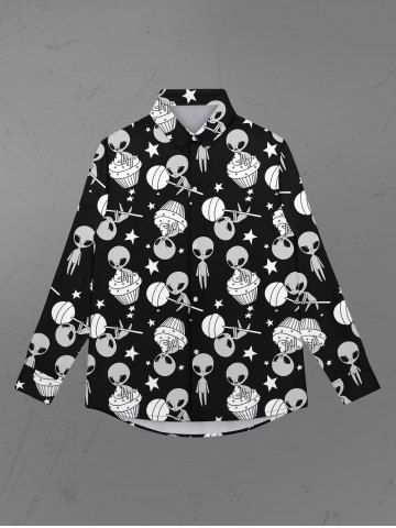 Gothic Turn-down Collar Skull Alien Candy Ice Cream Stars Print Buttons Shirt For Men - Black - 2xl