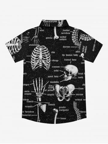 Gothic Turn-down Collar Skull Skeleton Structure Galaxy Letters Print Buttons Pocket Shirt For Men - Black - 4xl