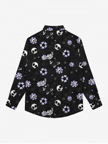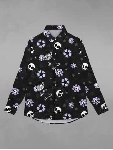 Gothic Turn-down Collar Skull Sunflower Star Cartoon Boy Print Buttons Shirt For Men - Black - L