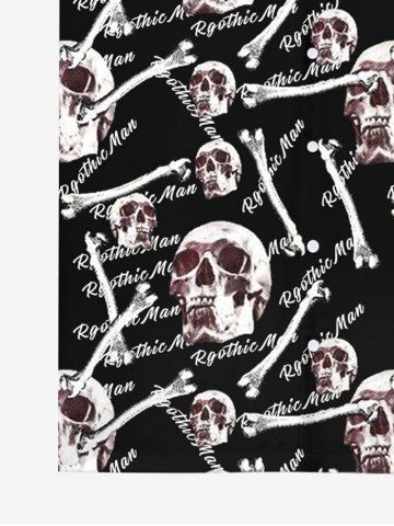 Gothic Turn-down Collar Skulls Bone Letters Print Buttons Shirt For Men - Black - 2xl
