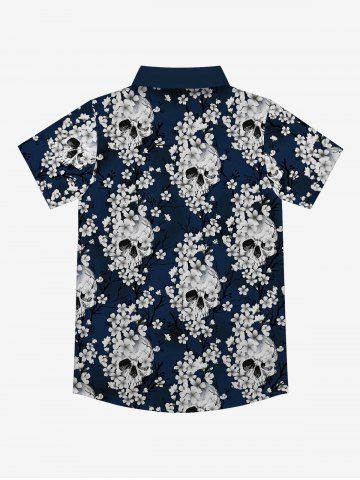Tops > Gothic Turn-down Collar Skulls Flower Branch Print Buttons Shirt For Men