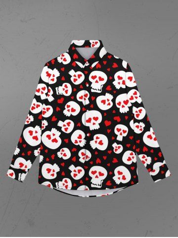 Gothic Turn-down Collar Skulls Heart Print Valentines Buttons Shirt For Men - Black - 6xl