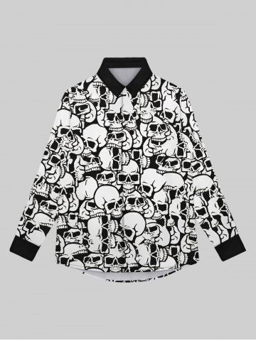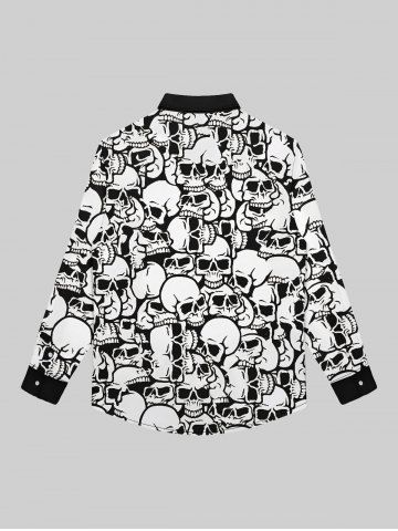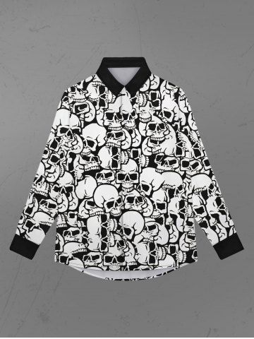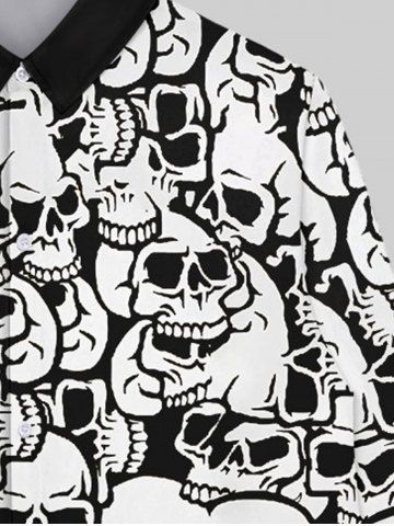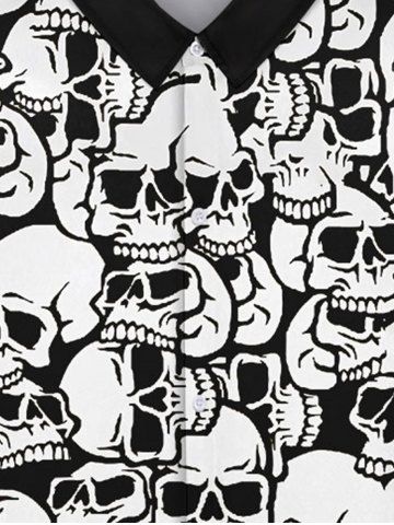 Gothic Turn-down Collar Skulls Print Buttons Contrast Binding Long Sleeves Shirt For Men - White - 2xl