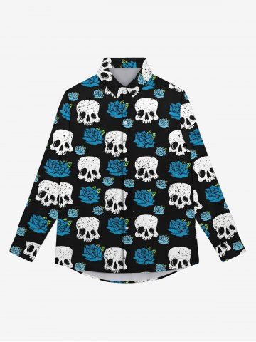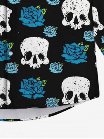 Gothic Turn-down Collar Skulls Rose Flower Print Buttons Shirt For Men - Black - 2xl