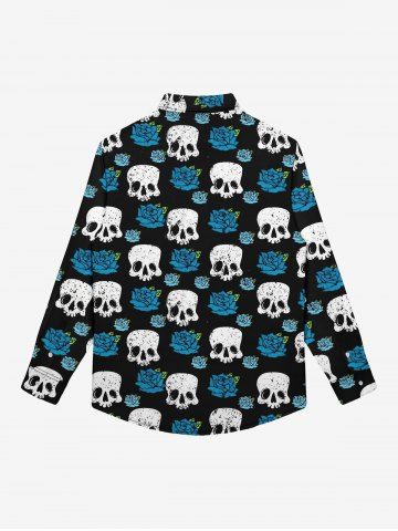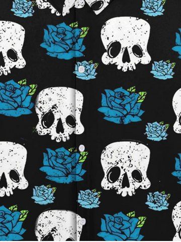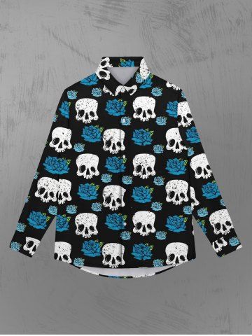 Gothic Turn-down Collar Skulls Rose Flower Print Buttons Shirt For Men - Black - 3xl