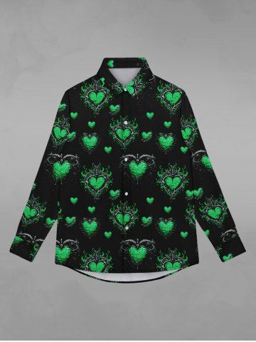 Gothic Heart Leaf Print Button Down Shirt For Men - Black - Xl