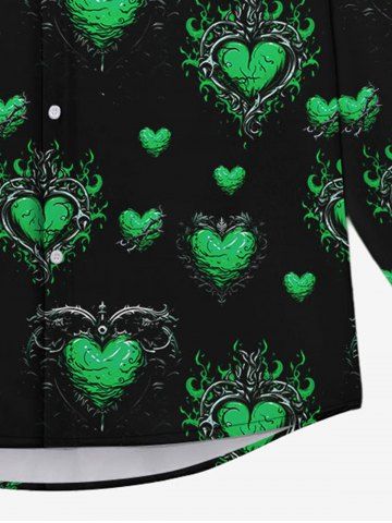 Gothic Heart Leaf Print Button Down Shirt For Men - Black - 6xl