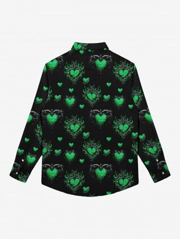 Gothic Heart Leaf Print Button Down Shirt For Men - Black - 8xl