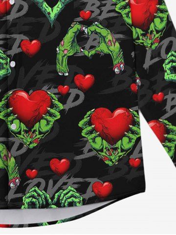 Tops > Gothic Valentine's Day Heart Skeleton Claw Print Button Down Shirt For Men