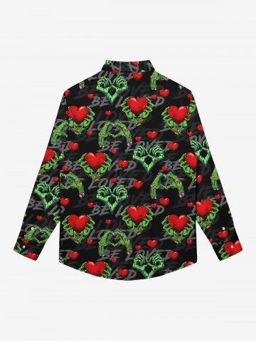 Gothic Valentine's Day Heart Skeleton Claw Print Button Down Shirt For Men - Deep Green - 7xl