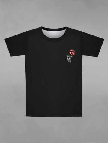 Gothic Valentine's Day Rose Flower Skeleton Claw Print T-shirt For Men - Black - S