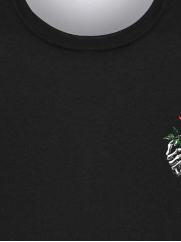 Gothic Valentine's Day Rose Flower Skeleton Claw Print T-shirt For Men - Black - L