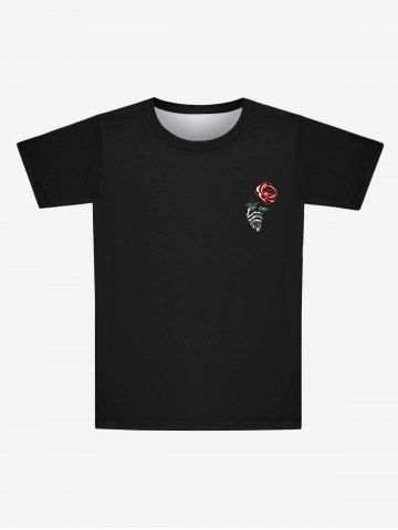 Gothic Valentine's Day Rose Flower Skeleton Claw Print T-shirt For Men - Black - 2xl