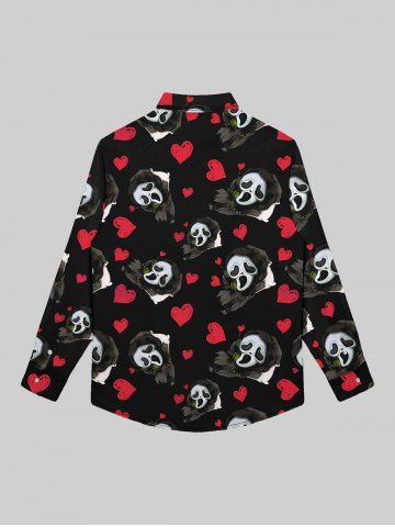 Gothic Valentine's Day Skulls Ghost Heart Print Button Down Shirt For Men - Black - L