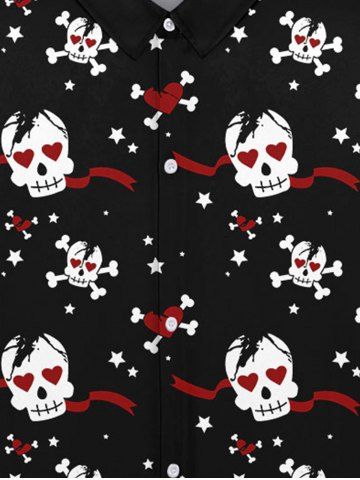 Gothic Valentine's Day Skulls Heart Stars Print Buttons Shirt For Men - Black - 2xl