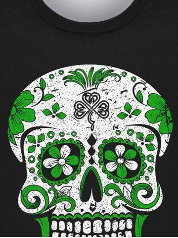 Gothic Vintage Flower Skull Print Short Sleeves T-shirt For Men - Black - Xs