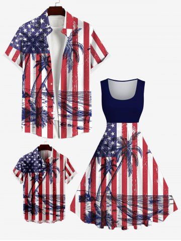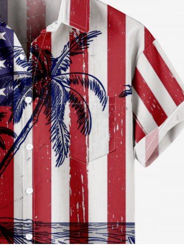 Tops > Kid's American Flag Coconut Tree Sea Waves Print Hawaii Button Pocket Shirt