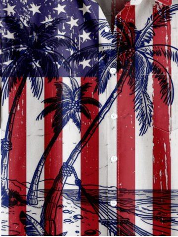 Kid's American Flag Coconut Tree Sea Waves Print Hawaii Button Pocket Shirt - Multi-a - 100