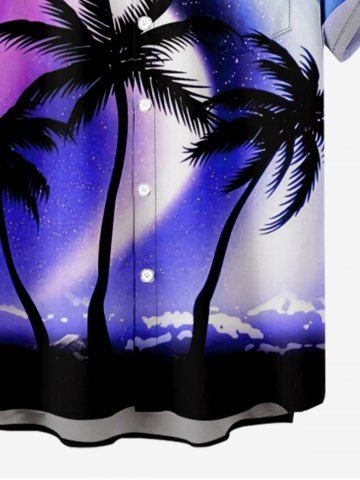 Tops > Kid's Colorful Ombre Aurora Galaxy Coconut Tree Print Hawaii Button Pocket Shirt