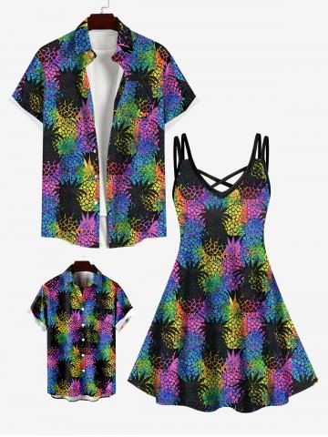 Tops > Kid's Colorful Pineapple Print Hawaii Button Pocket Shirt