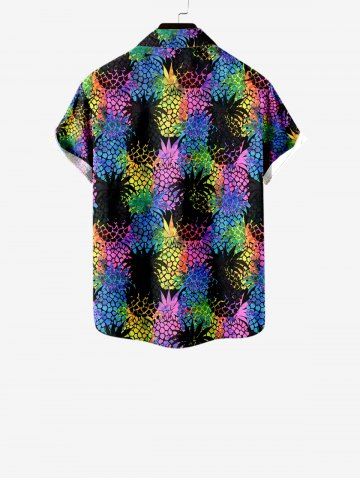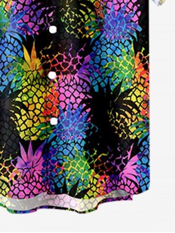 Kid's Colorful Pineapple Print Hawaii Button Pocket Shirt - Black - 160