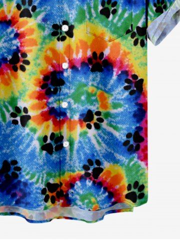 Kid's Colorful Spiral Tie Dye Cat Paw Print Hawaii Button Pocket Shirt - Multi-a - 160