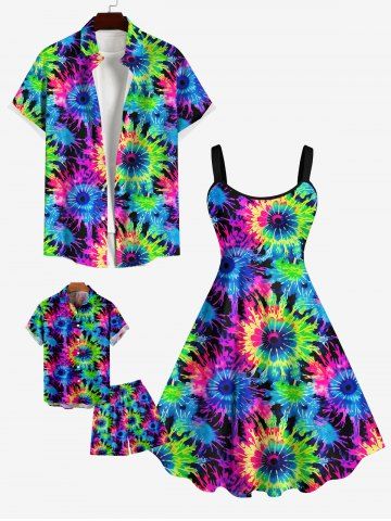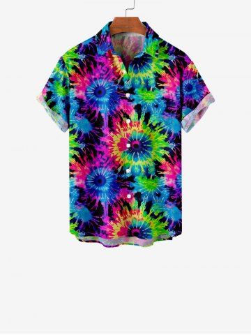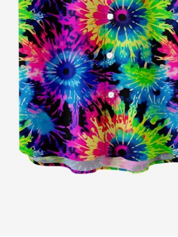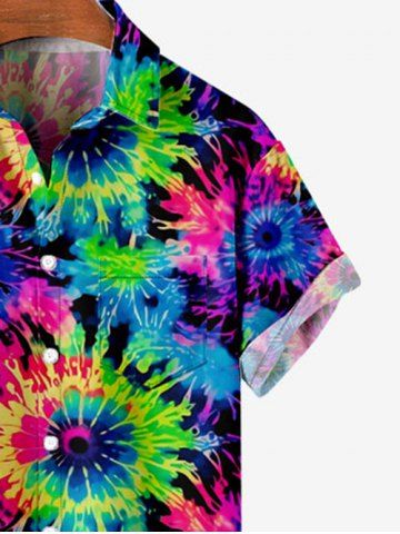 Kid's Colorful Spiral Tie Dye Floral Print Hawaii Button Pocket Shirt - Multi-a - 130