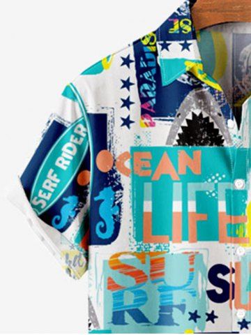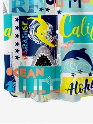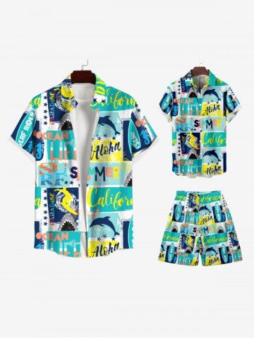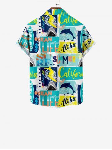Kid's Dolphin Letters Stars Geometric Colorblock Print Hawaii Button Pocket Shirt - Multi-a - 160