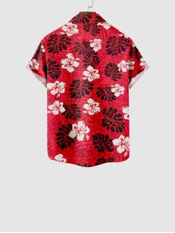 Kid's Flowers Palm Tree Leaf Print Buttons Pocket Hawaii Shirt - Red - 140