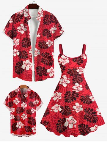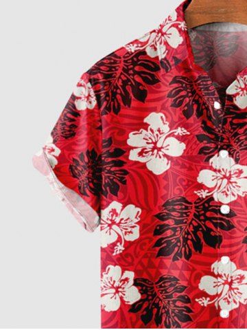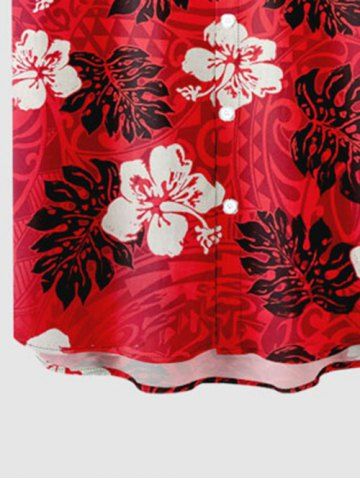 Kid's Flowers Palm Tree Leaf Print Buttons Pocket Hawaii Shirt - Red - 160