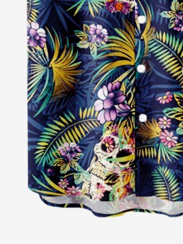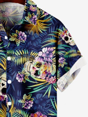 Kid's Skulls Coconut Tree Leaf Floral Print Hawaii Button Pocket Shirt - Multi-a - 160