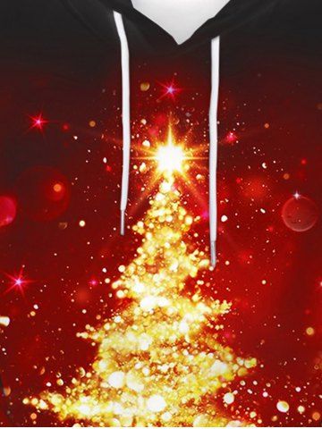 Kids 3D Sparkles Christmas Tree Flocking Lined Front Pocket Pullover Hoodie - Red - 100