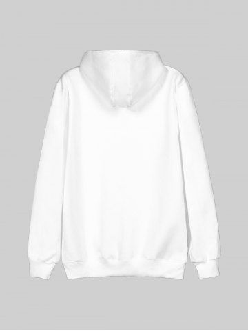 Kids Cartoon Cat Printed Front Pocket Pullover Hoodie - White - 150