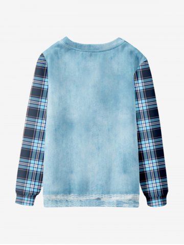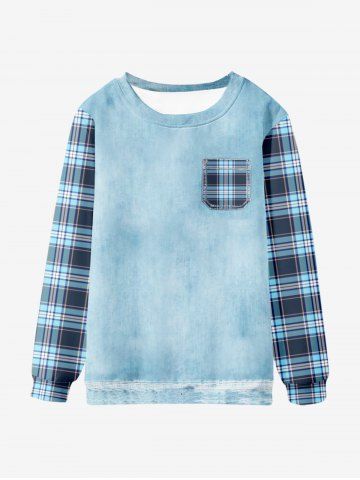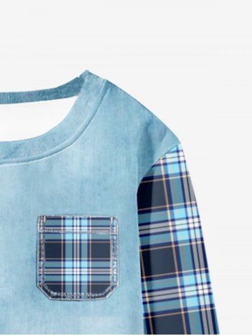 Kids Checked 3D Jean Pocket Print Flocking Lined Sweatshirt - Light Blue - 130