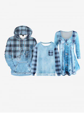 Tops > Kids Checked 3D Jean Pocket Print Flocking Lined Sweatshirt