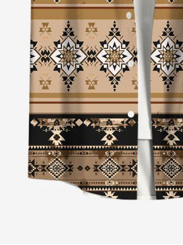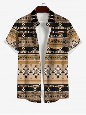 Men's Ethnic Floral Pattern Print Buttons Pocket Shirt - Coffee - 2xl