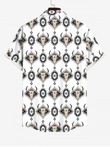 Men's Turn-down Collar Cow Head Ethnic Graphic Print Full Buttons Pocket Shirt - White - Xl