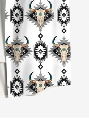 Men's Turn-down Collar Cow Head Ethnic Graphic Print Full Buttons Pocket Shirt - White - 4xl