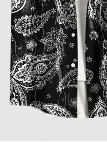 Hawaii Men's Turn-down Collar Paisley Floral Print Button Pocket Shirt - Black - 3xl