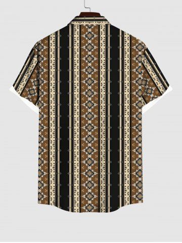 Hawaii Men's Turn-down Collar Striped Floral Print Button Pocket Shirt - Coffee - S
